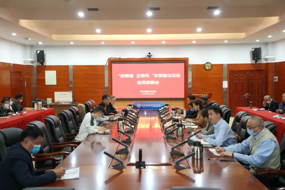 为进一步加强师德师风建设,根据山东省教育厅的统一部署和要求,“五一”前夕,青岛恒星科技学院在学校第二会议室,召开了“树师德 正师风”专项整治活动动员部署会。校长毕宪顺、党委书记纪德臻及党政领导班子成员出席会议,机关各职能处室负责人、基层党组织书记参加会议。会议由党委副书记王立庭主持。