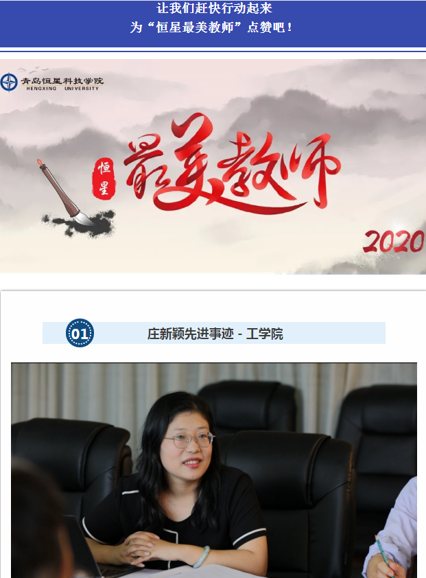 开展“点赞最美教师”活动。深入挖掘优秀教师典型,积极开展师德宣讲、事迹分享等活动,让身边人讲身边事,通过宣传栏、网站、微信公众号等宣传平台,大力宣传12 名“恒星最美老师”荣誉获得者的先进事迹,生动展示我校教师阳光美丽、爱岗敬业、无私奉献的良好形象,大大提升了学校的知名度和美誉度,在全校形成了尊师重教的良好氛围。